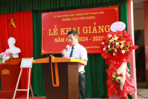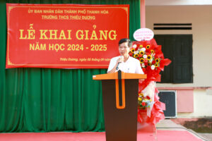 Tại lễ khai giảng, đồng chí Lê Văn Mão, Chủ tịch UBND phường Thiệu Dương đọc thư chúc mừng năm học mới của Tổng bí thư, Chủ tịch nước Tô Lâm trong không khí trang nghiêm nhưng đầy phần khởi. Tất cả Thầy Cô giáo, các bậc cha mẹ học sinh và các em học sinh cảm ơn sự quan tâm của Tổng bí thư, Chủ tịch nước, của Đảng, Nhà nước, Chính phủ đến sự nghiệp giáo dục, và tràn đầy quyết tâm thực hiện bằng được lời dạy của Bác Hồ kính yêu: Dù khó khăn đến đâu cũng phải tiếp tục thi đua dạy tốt và học tốt”.