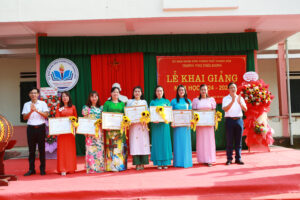 Lễ khai giảng cũng là dịp để nhà trường vinh danh, trao giấy khen, giấy chứng nhận, vinh danh và cảm ơn Thầy Cô đạt nhiều thành tích xuất sắc trong năm học 2023 – 2024. Đó là động lực, nguồn cổ vũ to lớn cho đội ngũ giáo viên, luôn lấy tâm huyết và tài năng để dìu dắt từng thế hệ học sinh của nhà trường lớn lên, trở thành những người công dân tốt, biết phấn đấu và giàu khát khao.