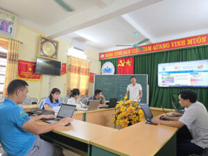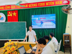 Thầy giáo Vũ Quang, Hiệu trưởng nhà trường dự và chỉ đạo buổi tập huấn